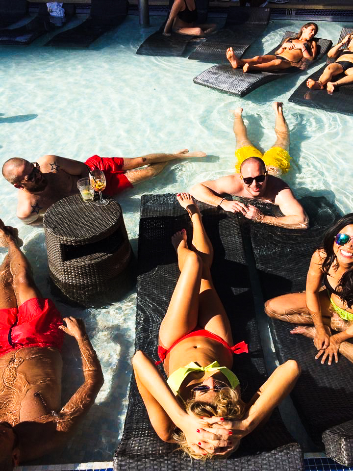 För er som hellre festar på kvällen, tänk om! Kan lova er att av alla stökiga fester jag haft i livet så har 8/10 varit på dagen. Vi har handvispat till housemusik till jag vet inte hur många White och Pink Party-fester på Kallis i Visby, vi har chillat på Slakthustaket till Hip-hop och reagge och vi har festat på berg och i parker när solen alla gånger när stått som högst på himlen. Nu skulle vi göra det på klubben Marquee i hjärtat av Las Vegas, på ett tak mitt på The Strip.