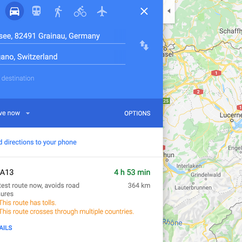 Nu var det dags för ett av de längre bilpassen på resan, nämligen mellan (tyska berget) och Lugano.